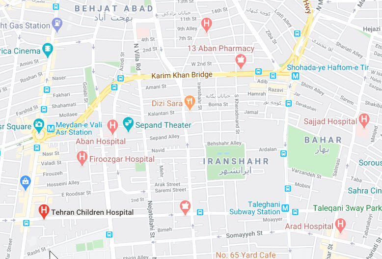 نقشه دسترسی بیمارستان کودکان